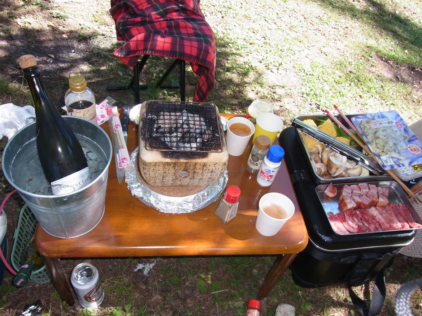キャンプ道具は無し・・・恥ずかしくて大岩の陰でBBQ。